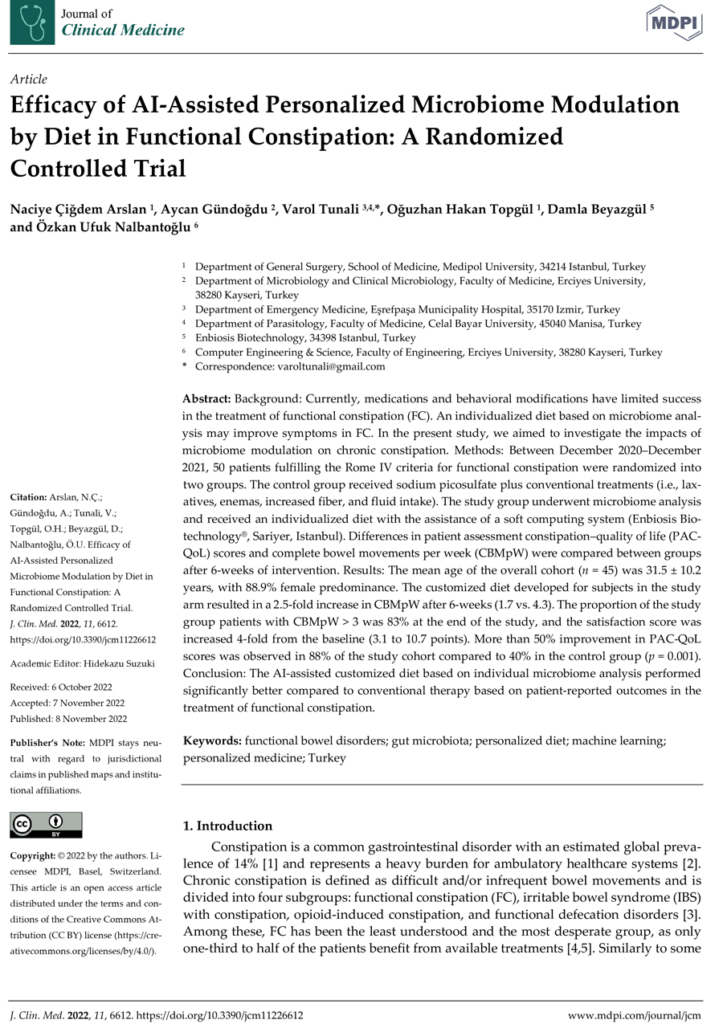 Clinical studies have been published in the Journal of Clinical of Clinical Medicine, and GUT MICROBES.